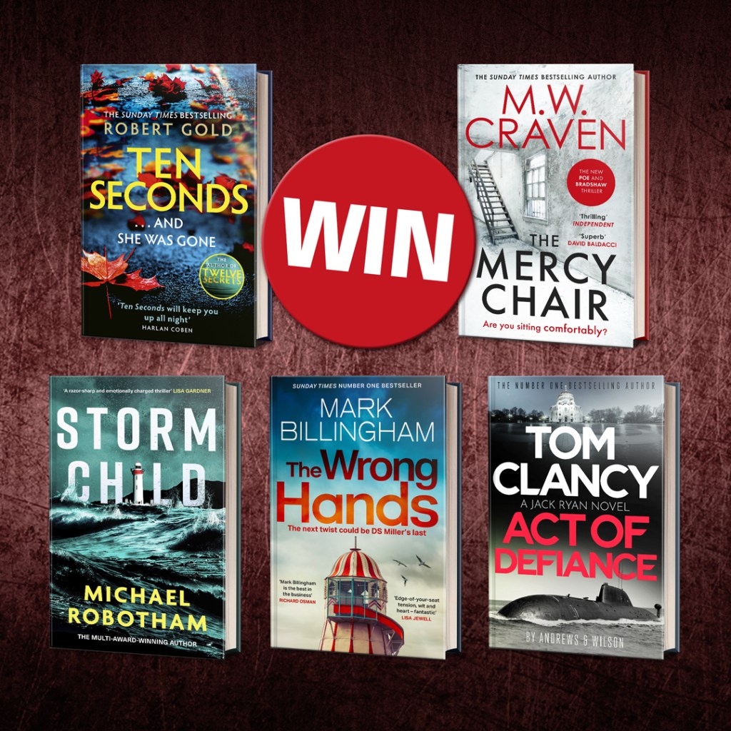 1. This is a competition for the chance to win a Father’s Day Crime Book Bundle. The bundle includes a copy of The Wrong Hands by Mark Billingham, Storm Child by Michael Robotham, Ten Seconds by Robert Gold, Act of Defiance by Tom Clancy and The Mercy Chair by MW Craven. To enter, simply like, share and comment on the corresponding Facebook post.